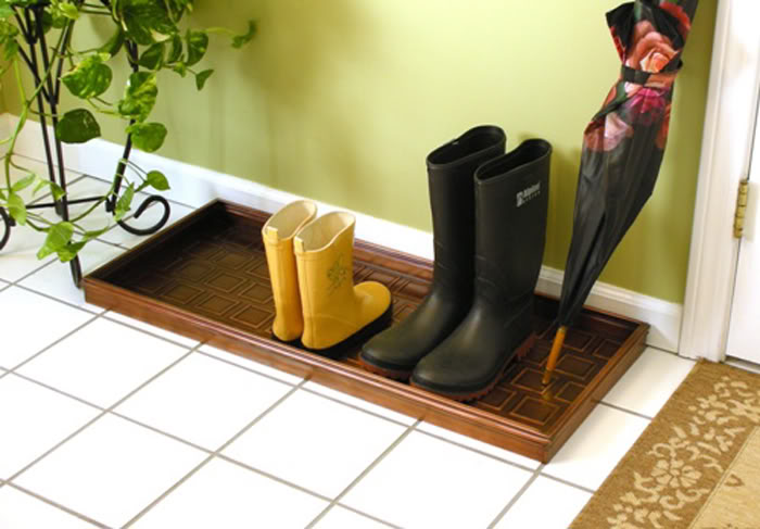 Тогда надо шарится по коврикам в прихожую,, но во первых они маленькие все, во вторых темных цветов.. Может правда поддон или открытые полки для обуви?
