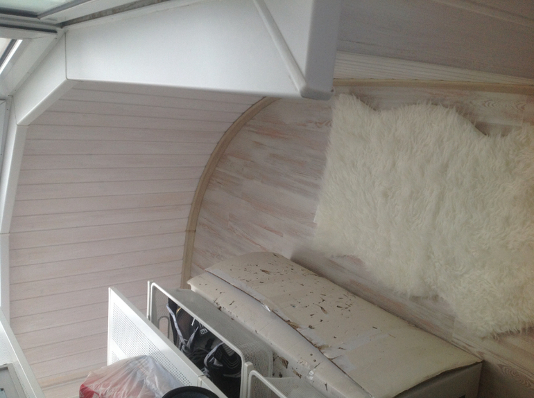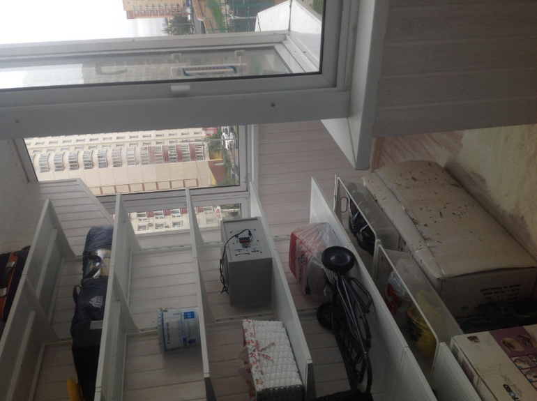денег вообще нет на ремонт, искали где дешевле, дальше с необжитым балконом жить не могла. Стала звонить по фирмам, приехал на крутом джипе дядя и озвучил цену в 230 тысяч и при этом зачем-то надо было закрыть половину окна из зала подоконником, в стоимость не входили свет розетки и шкаф. Нафиг надо, дядя культурно был послан. Следующая фирма со скидкой сделали нам балкон за 92 тысячи! В эту стоимость вошло: обшить вагонкой, провести свет и розетки, постелить ламинат и плинтус напольный, сделать встроенный небольшой шкаф, подоконники, сушилку для белья! Делали правда неделю!!!! Напрягали хождением курить и несоблюдением тихого часа. Потом дала им блюдце, чтоб курили на балконе и не отвлекались от работы. Небольшой скандал случился, когда отказались красить. Изначально это с мастером замерщиком обсуждали. После звонка начальству все покрасили, правда в один слой, и вагонка видна, но и ламинат такого цвета будто плохо покрашены, я решила так оставить , так устала от грязи за неделю. Еще нужно купить или рулонки на окна или жалюзи. Систему хранения купили в Икее- Альгот, мне очень она по душе. Сейчас акция на нее. Это будет шкаф, в Леруа купим бруски и дверцы жалюзийные и покрасим их в белый цвет. На балконе стало очень светло, прямо очень. Теперь там чисто, я сушу там белье, в недавнюю еще пору оно сохло за час. Балкон наш извращение архитектора, если можно так сказать. Выходишь из зала на балкон и поворачиваешь в детскую и там тоже выход. Полукругом идет балкон, непрактичный. Тумбу заказывали под колеса машины, как меряли они не знаю, не хватило буквально пару см, колеса не влезли. Муж нашел альтернативу, отнес на стоянку подземную там на цепь и на замок, многие так делают. Из меня фотограф тот еще, фоткала на планшет сына качество ужас , но общая картина может быть понятна. Цвет пола вышел очень темным на деле он почти белый с прожилками дерева. Еще ничего не украшала, надо доделать шкаф . Не знаю, как перевернуть фотки, простите за неудобство. Коробка из-под елки истыкана младшим сыном отверткой)))).