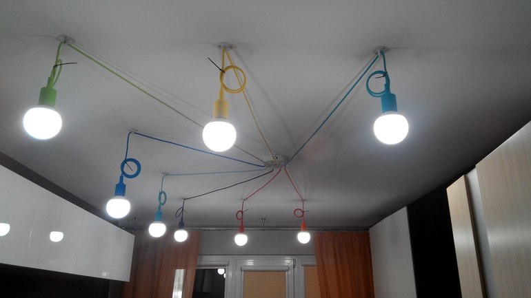 Все в комплекте было, те ссылки, которые Вы нашли - это на 1 шнурок и 1 лампу соотв :) Мы брали сразу ЛЮСТРУ на 8 шнурков, под чашей они все соединены. Лампы да, светодиодные. БОЛЬШИЕ :)))) обрыли весь Минск, везли в итоге под заказ. С маленькими лампочками вид будет совсем не тот.