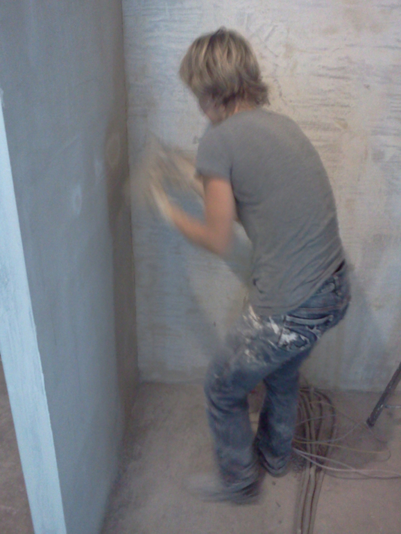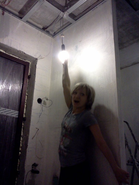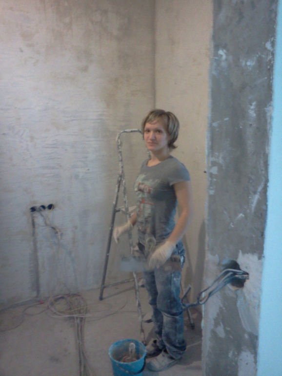 В основном коридоре стены естественно были завалены, и конечно мы их выравнивали опят по маякам. В это раз правда маяки вышли не с первого раза, и пришло два маяка переделывать. Муж занимался чем-то другим, а на мои плечи легла работа во штукатурке и шпаклевке. Т.е. все полностью пришлось делать мне. Слой штукатурки тоже был не маленький. И вытягивать было сложно, тем более 1,5-х метровым правилом неудобно, а метровым маловато(( стена была чуть больше метра. Но как говорится глаза боятся, а руки делают. Потом все вмятины и неровности выравнивала шпаклевкой. Да еще очень важно при штукатурке, консистенция последней. Чуть жиже и все будет стекать со стен. Эта была моя ошибка и не раз.
