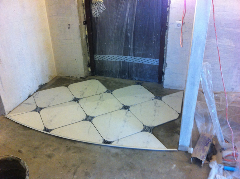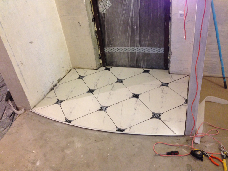 Плитка Атэм, техас. В коридоре был наш первый блин по плитке. Потом уже была кухня. Тогда, с 2 кв метрами, провозились целый день.