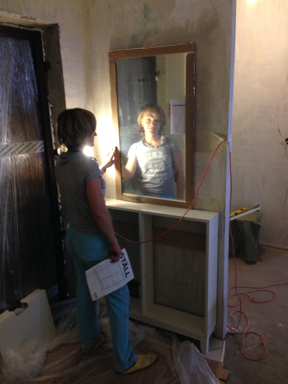 Когда залили полы, мы решил первым делом сделать прихожую. Уложить плитку. Я писала в дневнике мои раздумья по этому поводу.