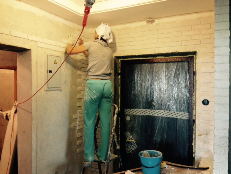А потом уже был декоративный кирпич на стенах. Об этом я писала тут.