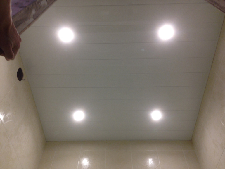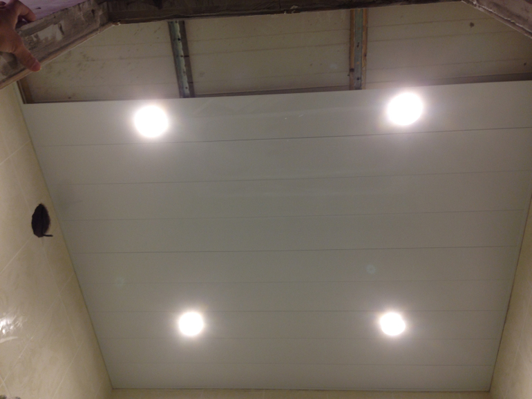 Потом пришло время потолков. Решили опять сэкономить и купили реечные потолки в леруа.