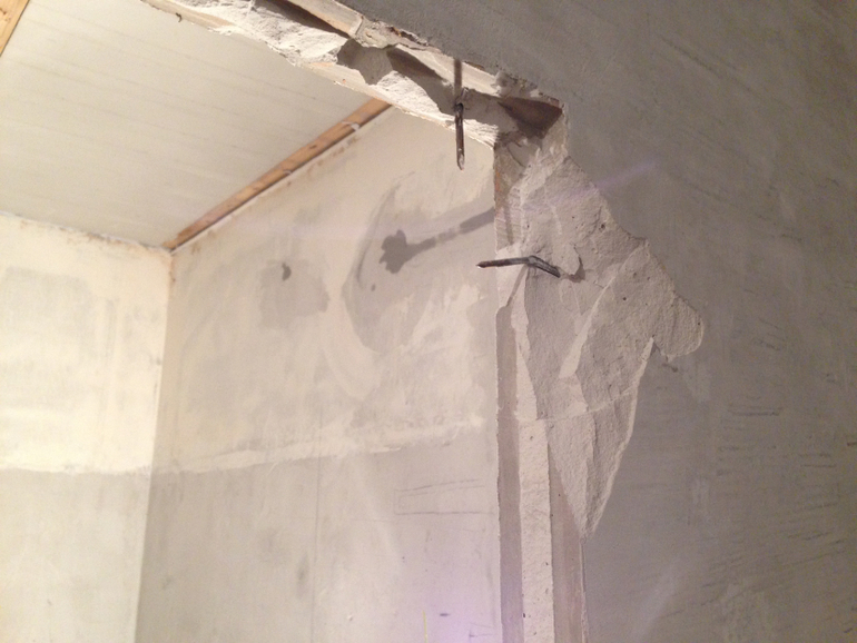 Хотя покажу ужас который случился когда выламывали старые двери: Куски гипса прям отваливались вместе с доборами