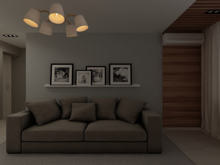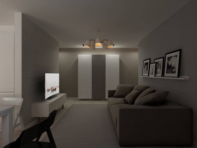 Заказчик отказался от данного варианта из-за потолка, который был опущен на 12см из-за встроенных светильников. Сейчас жду утверждения второго варианта) Опущен потолок на 8/ см только на кухне и часть в гостиной.