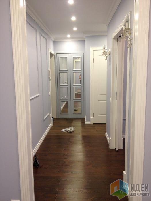 мы в цвет ломината плинтус положили, а потолочный бардюр белый - воздушный. А дверь уже будем ставить в тон всех дверей что в итоге будут, но приближенный к цветц ломината)0 (Ломинат серый)