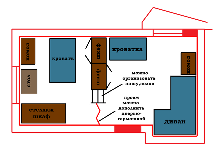 Здравствуйте,Анастасия! Большое спасибо за ответ и схему.Такой вариант никогда не приходил мне в голову! Я обязательно пройдусь с рулеткой и передвину мебель.Обязательно напишу свои результаты.Еще раз спасибо за Ваше время и хорошие идеи.