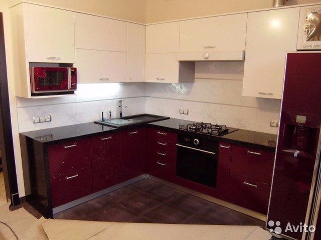 Девочки, кухня будет низ бордо, верх белый-бордо, столешница черная, стеновая панель белая, Помогите определиться с оформлением стен и окна. Наша схема.