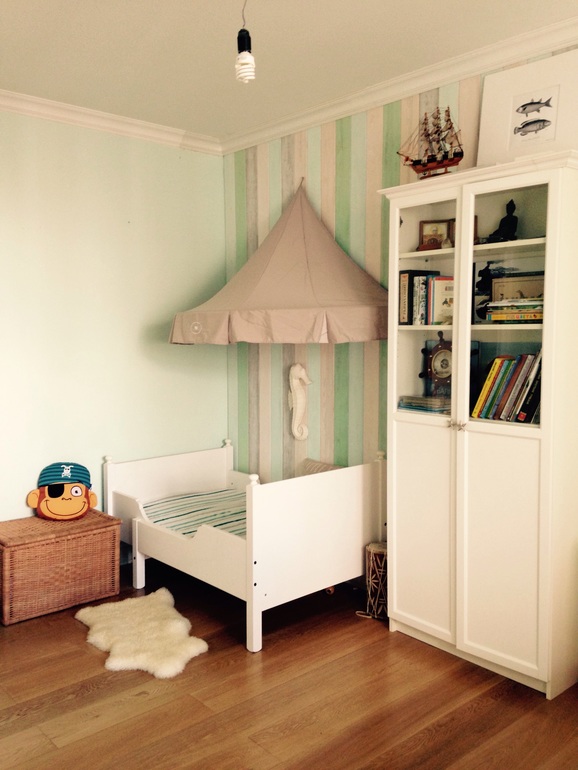 Интерьерное решение детской комнатыНе так давно писала тут пост про обои с совами для мальчиков. К сожалению, выбранные обои в Москве отсутствуют (только под заказ 30-40 дней).