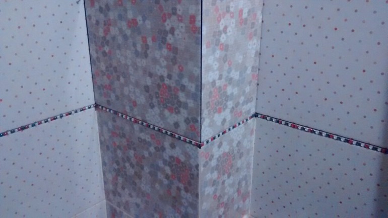 Сейчас заканчивает класть плитку у нас в ванной