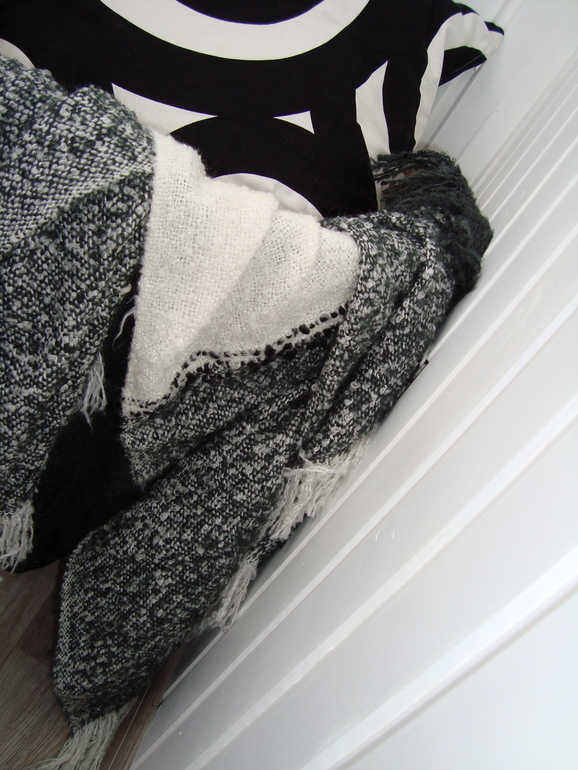 Пледик, чтобы кутаться прохладными вечерами. Корзина плетеная, не понимала раньше этих вещей, а оказалась очень удобной для хранения, куча всего влезает - плед, подушка, а под ними еще большое, непригодившееся пока кашпо прячется.