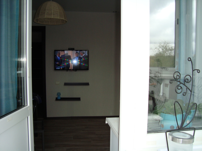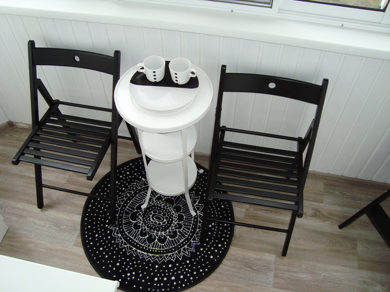 Сидя на балконе, можно смотреть телевизор, причем с каждого стула видно хорошо.![]()