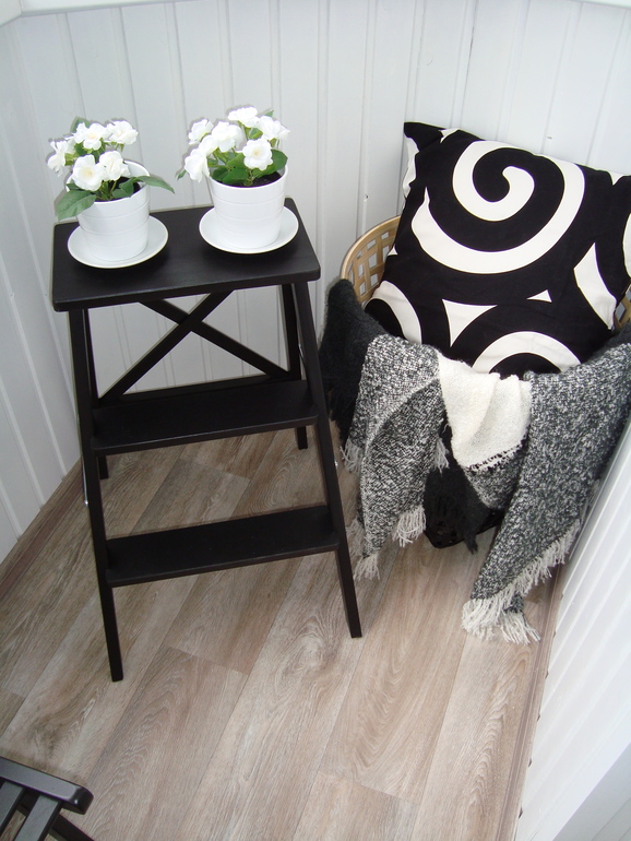 Ну, теперь я знаю что такое делать ремонт "потихоньку". Уважаю терпение, мужество и выдержку девочек, которые через это проходят. А ведь у меня в таком режиме трансформировался только балкон. Нужно сказать, что это тоже было непросто. Балкон кривой, косой, в общем очень несчастный. Муж терпеливый, упорный и упертый. Фиг знает, кто из них победил, но результат мне нравится. Муж все делал своими руками (кроме остекления). Стены - вагонка, пол - линолеум, потолок - пластиковые панели. Остекление - холодное алюминиевое. Очень радуют эти светлые, легкие конструкции. Как вспомню эти чудные "троллейбусные окошки", доставшиеся в наследство от старых хозяев, так весело становится. Опять все бюджетно. Но кто сказал, что бюджет - это убого?