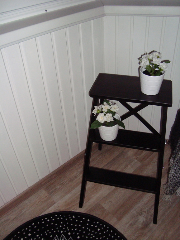 Поселила так же любимую мной икеевскую стремяночку-табурет. Очень нравится она мне. Часто использую ее в качестве сиденья, как барный табурет. Она выше обычных стульев, люблю сидя на ней, смотреть на ночной город.![]()