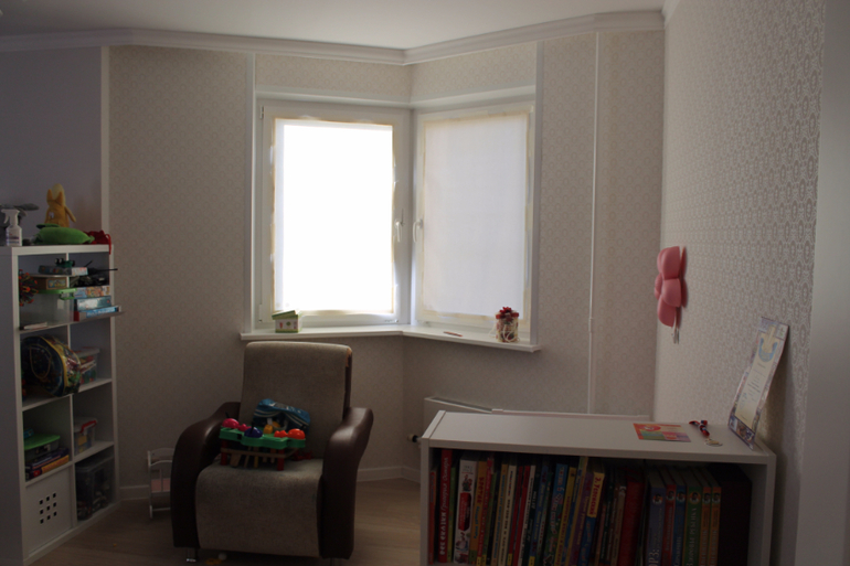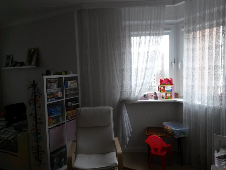 Как планировала я: сделать девочке розово-сиреневые рулонки блэкаут, мальчику салатовые. А сверху будет висеть белый тюль.