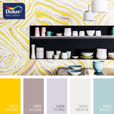 У вас такие обои яркие! Зачем ещё цвета???? Будет как крыло у попугая. Просто поддержите цветовую гамму обоев - сереневый, белый, зелёный...