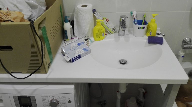 Подвесить проблема, так как столешница должна сама опираться на эту тумбу. Сейчас под ней стоит деревянный костыль для опоры. Да и размер 58 просто не влезет:( машинку в стену не вдавишь:(