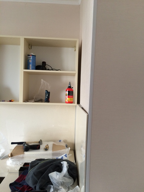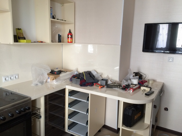 сейчас у меня идет установка кухни, мастер стал устанавливать стеновую панель.