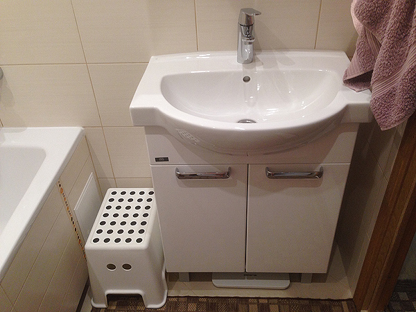 Тумба с раковиной - хотела широкую и глубокую раковину. Кстати, удобно мыть такую модель. Хотя сейчас, наверное, искала бы с выдвижными ящиками внизу:
