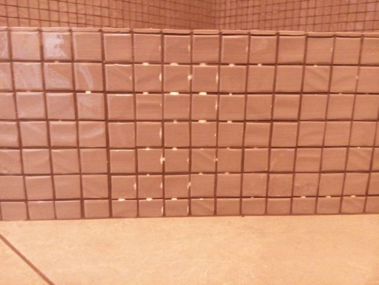 Я вот даже смотрю нижние фото (где белая мозаика), но там нет такого, все швы ровные.
