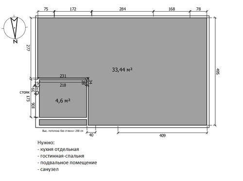 Авторские проекты дизайнеров.(Посты не по теме будут удаляться!)Любопытная мне планировка досталась от Анечки - 35 квадратов с высоким подвальным помещением, который было решено превратить в жилое помещение, связав первый и нижний этаж лесницой).