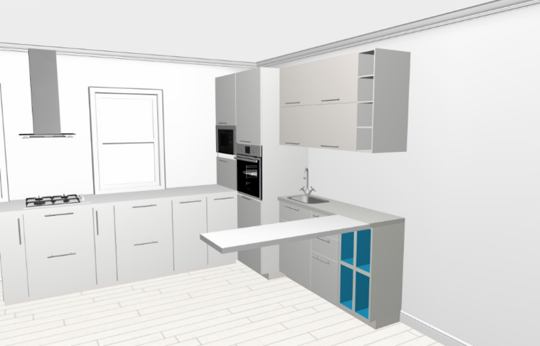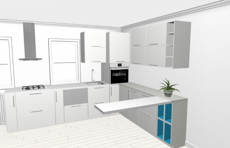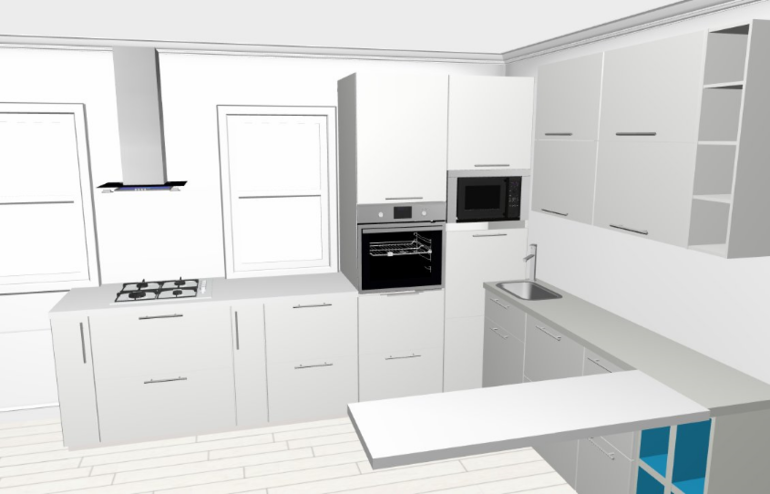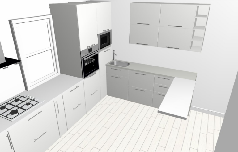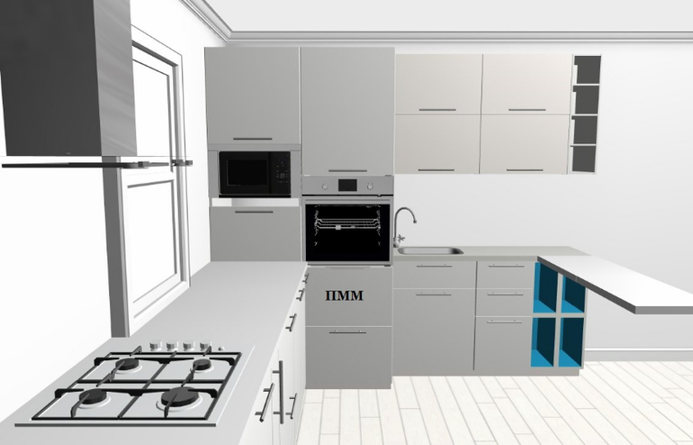 На стыковку вообще внимания тут не обращайте, т.к. в Икеевском планировщике не получается по-другому. Кухня будет не Икея, будем на заказ делать.