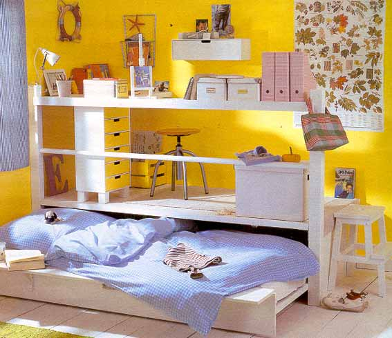 Хочется максимального простора (а где его взять-то на 7кв.м???????), чтобы и кроватка была, и шкаф, и место для хранения бесчисленных игрушек, стол (школа-то тоже не за горами...), да еще и место для игр чтобы осталось. Видела в нэте фоточки с подиумом и выкатной кроватью из-под него... У кого-то есть такие в реальности? Как осуществляли задумку? Удобно ли?