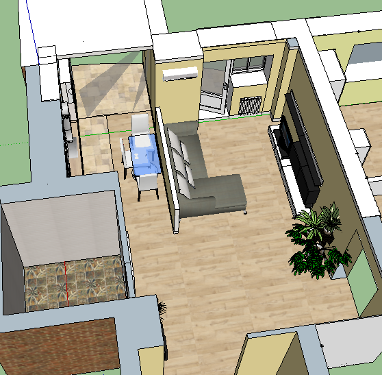 Там еще плитка с кухни на балкон буквой Г идет, некрасиво смотрится, как это обыграть?Помогите, пожалуйста, уже котелок не варит (