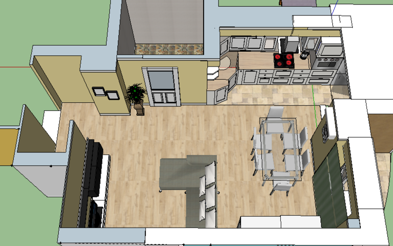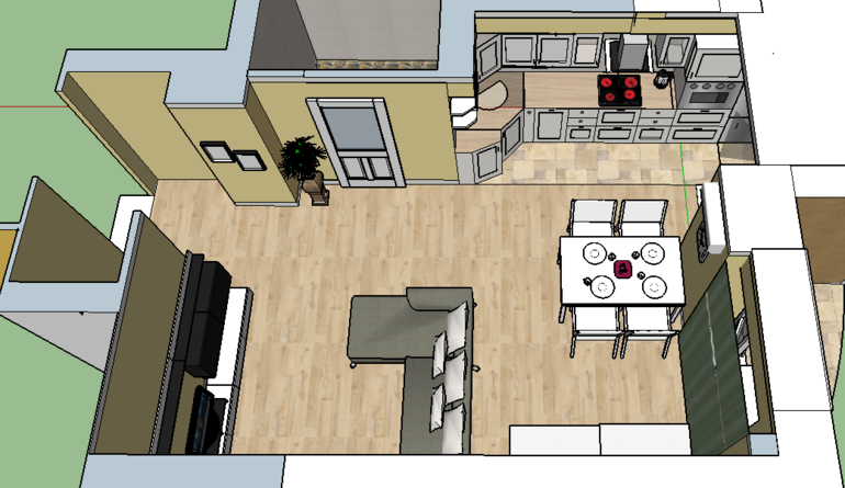 Имеется кухня-гостиная, мебели еще нет, вот и думаю как что расставить. Справа от кухни совмещенный балкон, на нем же и холодильник по одной стене с кухней. Балкон кривой, полукруглый. Помогите советом, пожалуйста. Какая расстановка лучше? Иногда бывают гости сразу по 10 взрослых + дети, нужно где-то рассадить. Вот думаю, либо сразу большой стол, либо раскладной.
