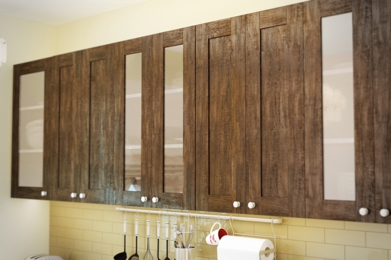 Верх кухни (по сути три шкафчика в которые вставлено сатиновое стекло) планируем таким вот достаточно ярким коричневым, фотографии не передают, в реале он гораздо ярче и светлее.