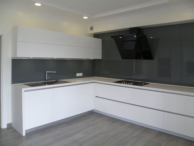 Девочки что подскажите, может у кого-то свой вариант, за который буду благодарна. Цвет столешницы на фото под розетками. Светло-серый (или бежевый?) и темно-серый. Сомневаюсь, если выберу светлый, то все сольется, а темного цвета боюсь, что кухня станет холоднее. Сама кухня белая глянцевая.
