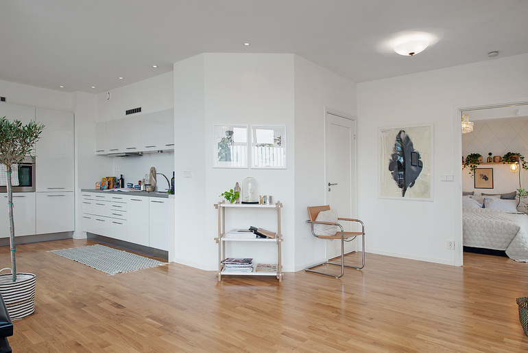 Пока у нас все стены во всей квартире белые (комната слева не голубенькая, она такая же белая, просто она на северную сторону) так что пятна и захватанные углы неизбежны. Посмотрим, где их чаще всего приходится отмывать, и там уже что-то будем придумывать. Пока на примете уже есть одно место такое в прихожей =)