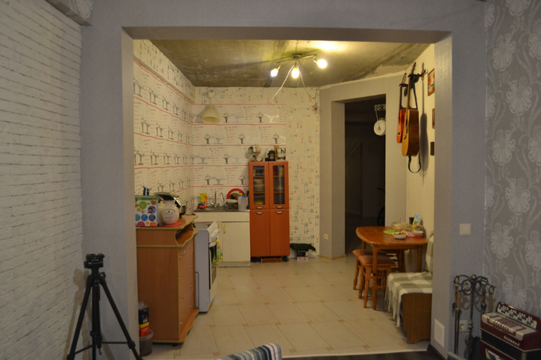 это вид на кухню с зала ( не пугайтесь, кухонного гарнитура пока нет )
