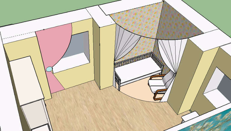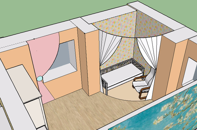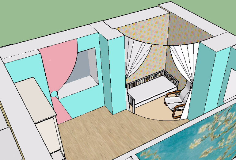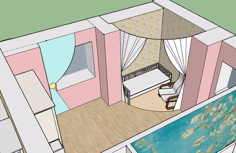 По поводу тюли - не знаю, я в нашу детскую тяжелые шторы пока не хочу, хочется больше света, тем более , у вас спальная зона и так отгорожена от света. Поэтому достаточно будет голубой тюли, на мой взгляд. Еще оценивайте, куда выходят окна (Север, юг)