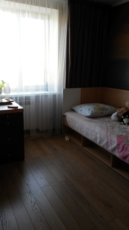 Я бы как раз текстиль на детский поменяла: шторы в крупный цветок с фиолетовыми элементами, на стул чехол такой же, подушек цветных добавить. Большой рабочий стол трехлетке не особо нужен. Сделала бы из него подобие комода (если полки внизу слева разворачиваются) или игровой домик (сшить чехол по типу палатки, постелить пушистый коврик - типа икейские для ванной. Полки стола использовала бы как комод (для белья и прочей мелочевки). Еще заменила бы ручки на шкафе и ящиках стола. Видела недавно медного цвета в форме божьих коровок. Ну или что-то более детское просто.