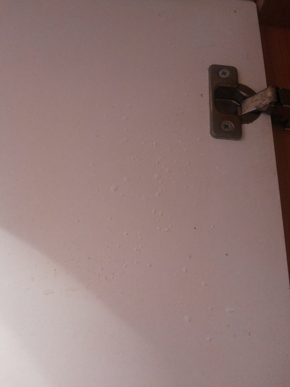 Не знаю что и делать? Сначала не понимала,что на кухрнных шкавчиках белое как мука. Аозже дошло. ЭТО