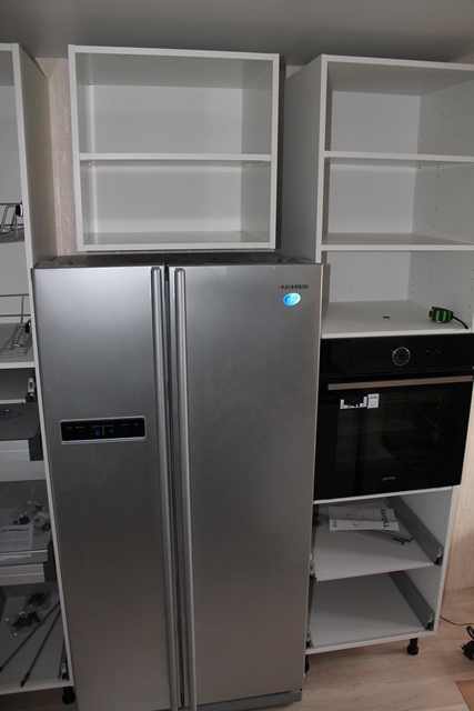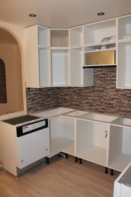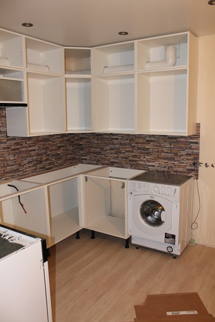 Теперь кухня стоит, а скинали пока не заказали -нет денег, и столовую группу ещё не заказали. Хотя я уже выбрала. Тоже пока не хватает и на текстиль пока не хватает.