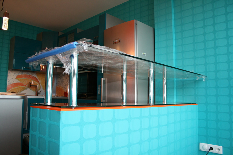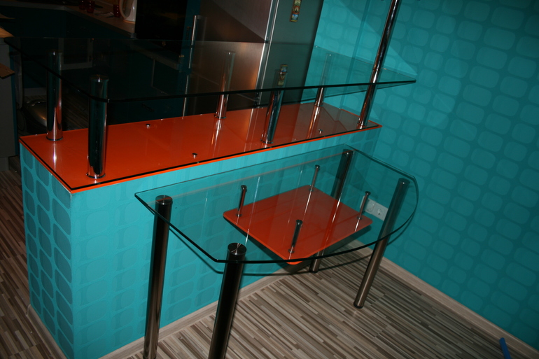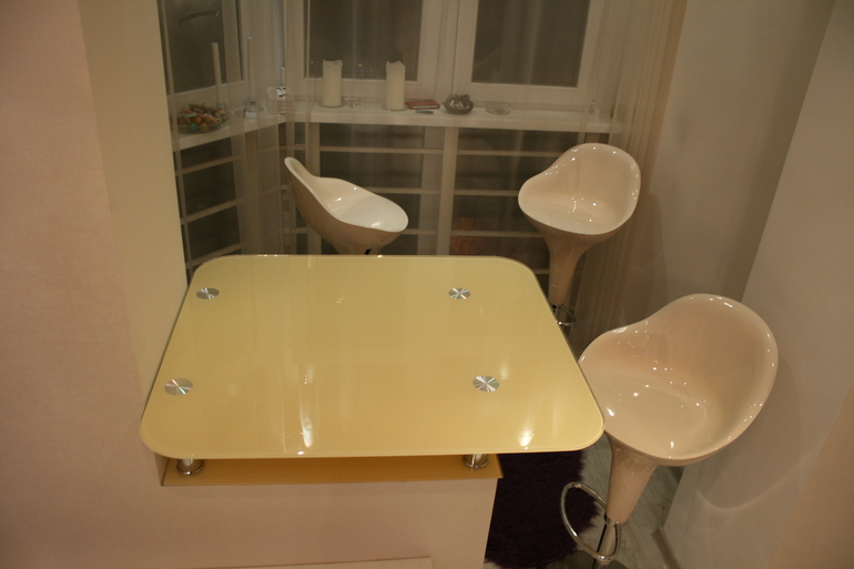 У меня муж стеклом занимается, так у него часто заказывают столы на подоконники, что остаются после сноса окна. Фотки смотрите, что можно сделать: