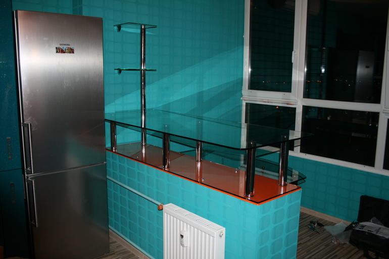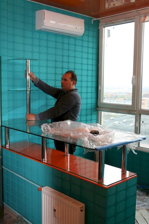 Мы тоже присоединяли только балкон к кухне. Именно балкон, а не лоджию. Утепляли. С учётом точки росы. По типу термос. Чтобы тепло не выходило когда внутри отопление, а снаружи минус, а летом наооборот держалась прохлада от сплита. Термос-прослойку делали по всему периметру балкона. Тёплый пол, конвектор на стену. Балконный блок демонтировали. А островок оставили и батарею под ним. Сделали эту зону барной стойкой. Сверху закрыли столешницей одинаковой с кухонной столешницей.