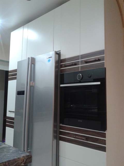 Мы всё делали своими руками. Это муж мой на фото)) Экономили каждый рубль.Но средств всё завершить всё равно не хватило. Кухня тоже сам муж собирал. Корпуса заказали в Икеа. Долго планировали сами онлайн. Просчитали, купили, сами привезли, сами собрали и установили. А потом нам отказались отдельно делать фасады. Все фирмы, куда мы обращались. Либо дороже готовой кухни цену называли.