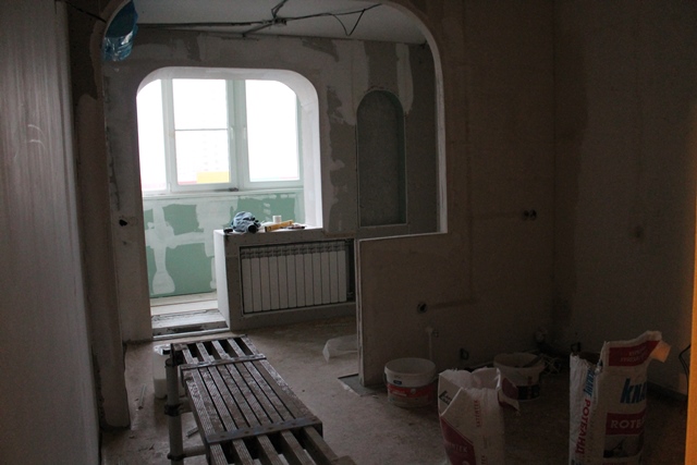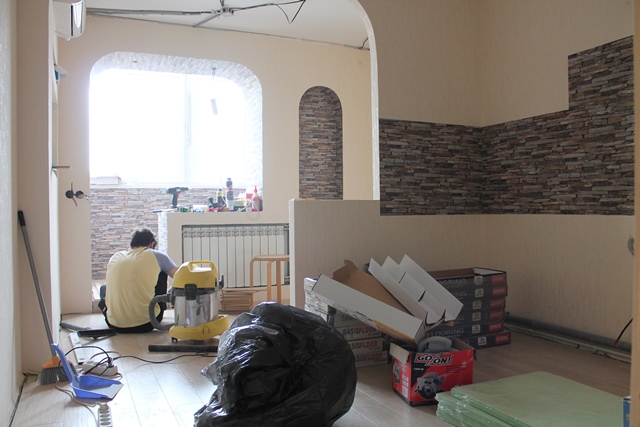 Было так. На стену, которую муж выкладывает не обращайте внимание - это у нас зонирование.
