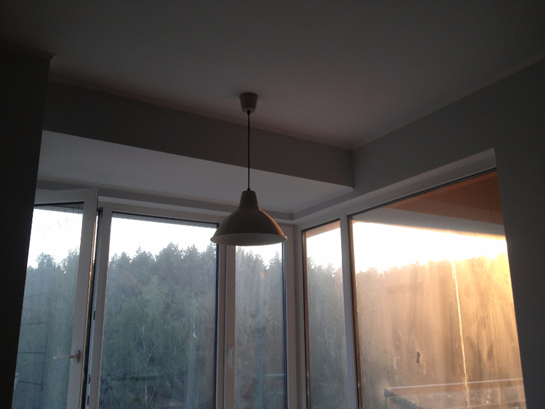 Потолочному карнизу, как мне кажется, мешает разница в уровне потолка... Не могу придумать, как бы его красиво прилидить...