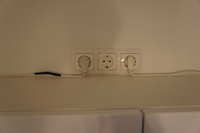 Розетка на самом деле розетка готовилась тройная, потому что мы планировали подсветку и справа от варки. Но там в итоге стоит свч, и мы решили, что нет смысла подсвечивать ее крышу.