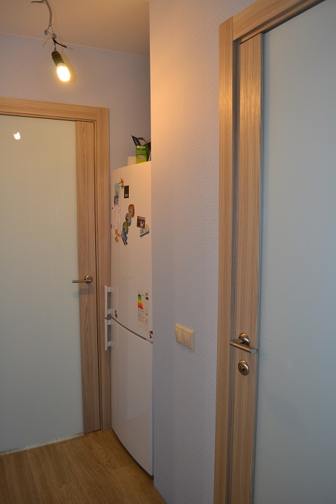 у нас и дверь и пол похожие, в прихожую взяли голубые в кухне и комнате бежевые