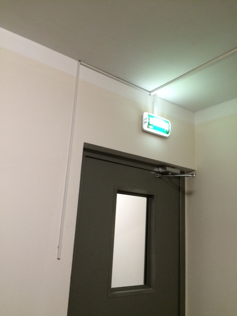 Была довольно удивлена, что не пришлось для вызывной панели за общей дверью вести провода от каждой квартиры. Все провода уже выведены к общему щитку и только от него по коробам пожарной безопасности и далее немного вниз к нужному месту вывели эти провода к панели.