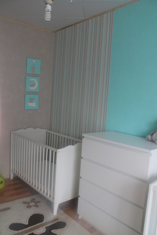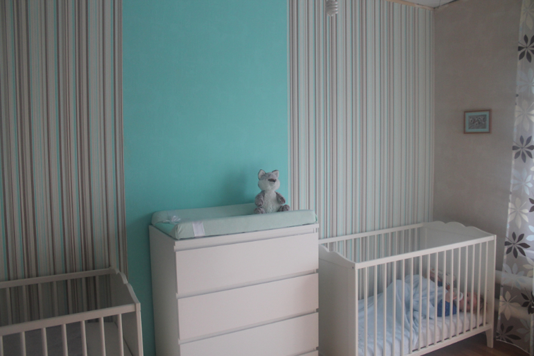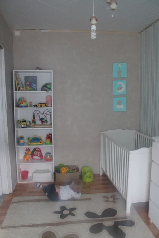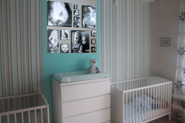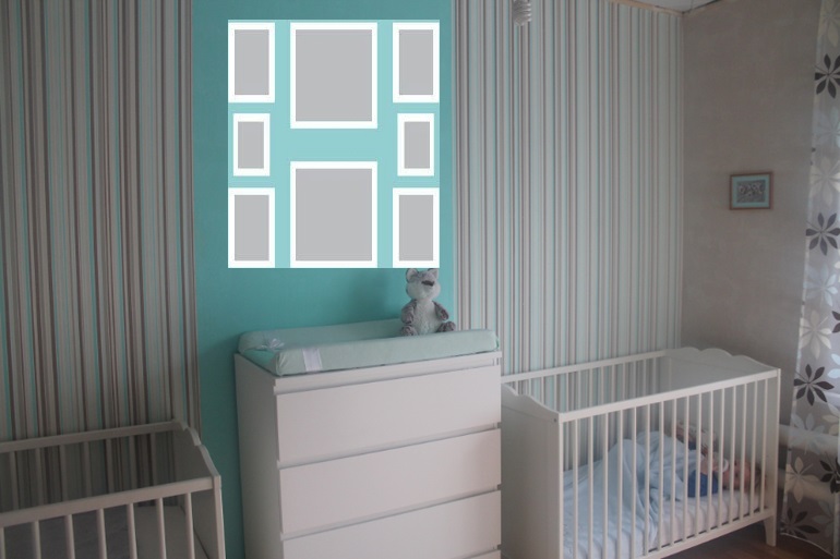 Рамочки с фотографиями это хорошо, конечно, но лучше функционал. Рамочки с фото хорошо будут смотрется на полочках и книжки детские будет куда ставить. И деть подрастающий сможет малевать каракули на доске))) Так что можно так. Только без столика, раз комната узенькая.