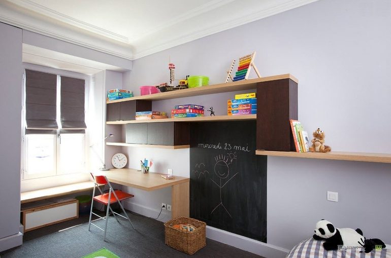 Идея с доской, на которой мелом рисовать хорошая, но вот от мла будет мусор (или у меня мел такой?!:)). Я бы еще для варианта предложила пробковую доску, на нее как раз можно лепить "шедевры" детей, расписание и прочее