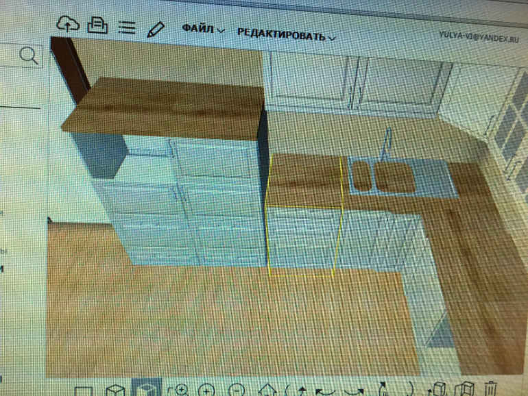 все это обусловлено, в основном, розетками, выводом вентиляции и воды. недошкафы) будут ниже, над ними телик. насчет рабочей поверхности, может, развернуть мойку и тогда угол тоже будет свободен. но я сейчас попробую нарисовать как вы пишете. спасибо за свежий взгляд)
