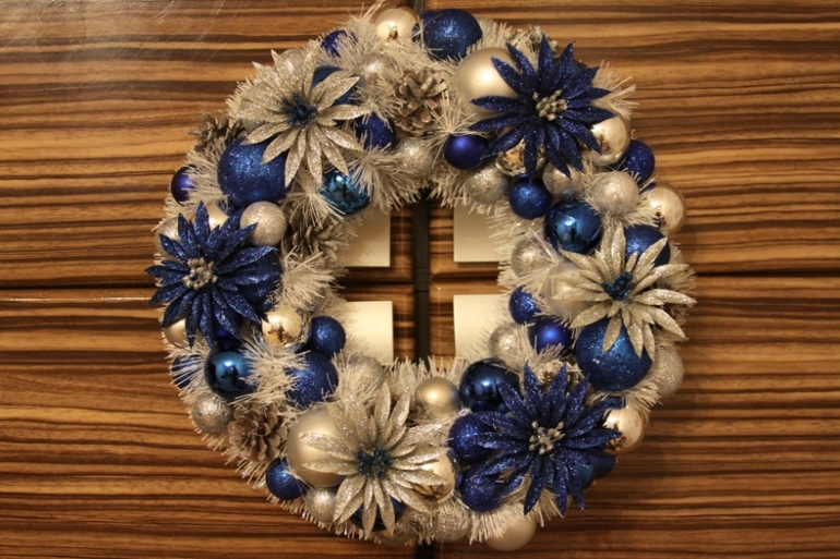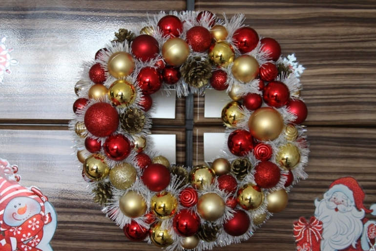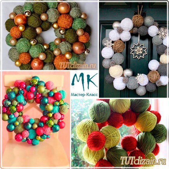 2. Хочу сделать венок на двери - из веточек, шерстяных ниток и елочных игрушек